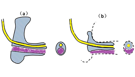 方法二是直接制作未占據整個外耳部分的耳模(如圖b中紫色部分所見)。