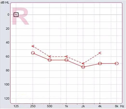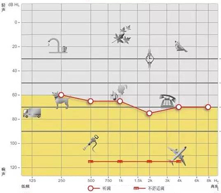 純音測試聽力圖的橫坐標為頻率,從左至右表示測試聲的頻率從低到高,即125Hz至8000Hz;縱坐標為強度,從上至下表示受試者能聽到的最小的聲音強度,以dBHL為單位。如下圖所示:</p><p> </p><center><img alt="" src="/upfiles/201903250213137760.png" width="440" height="400" /></center><p></p><p> 聽力圖的畫法自從1943年在C.C.Bunch的著作中出現后,至今沒有改變。通常右耳的測試結果用紅色表示,左耳用藍色。下圖是ASHA(1990)建議使用的各種標記符號,這些符號已在世界各地廣泛使用。</p><p> </p><center><img alt="" src="/upfiles/201903250213216822.png" width="440" height="250" /></center><p></p><p> 純音測試的測試項目有氣導、骨導、舒適閾與不舒適閾。那么這簡簡單單的聽力圖在驗配過程中有哪些重要作用呢?</p><p> 1、確定聽力損失程度</p><p> 按照世界衛生組織(WHO)1997年的標準,根據0.5kHz、1kHz、2kHz、和4kHz氣導平均聽閾值,將聽力損失分為輕度、中度、重度和極重度。</p><p> </p><center><img alt="" src="/upfiles/201903250213312187.png" width="440" height="180" /></center><p></p><p> 世界衛生組織(WHO-1997)的聽力障礙分級標準</p><p> 舉例</p><p> 下圖為某一聽力損失者所測得的聽力圖</p><p> </p><center><img alt="" src="/upfiles/201903250213367902.png" width="440" height="380" /></center><p></p><p> 0.5kHz的聽閾為65dBHL,1kHz的聽閾為65dBHL,2kHz的聽閾為75dBHL,4kHz的聽閾為70dBHL。則平均聽閾為(65+65+75+70)/4=68.75。將68.75dBHL代入以上分級表格,得到該聽力損失者的損失程度為重度。 聽力損失程度的確定有利于確定助聽器的功率。</p><p> 2、判斷聽力損失性質</p><p> 根據氣導、骨導的關系,可將聽力損失分為傳導性聽力損失、感音神經性聽力損失及混合性聽力損失。</p><p> 骨導與氣導之差大于10dB,且骨導在正常范圍內為傳導性聽力損失,表明聽力下降是由外耳、中耳病變引起。</p><p> 氣骨導一致(≤10dB)且都在正常范圍之外為感音神經性聽力損失。表明聽力下降是由耳蝸、聽神經損傷引起。</p><p> 骨導與氣導之差大于10dB,但骨導在正常范圍之外為混合性聽力損失,表明以上兩種聽力損失均有,由上述多種部位病變引起聽力下降。確定聽力損失性質還需結合臨床表現,也有助于助聽器佩戴效果的預測。</p><p> 3、解釋聽力損失者的日常生活困難</p><p> 聽力損失者在日常生活中經常遇到的問題有1)時而聽得到,時而聽不到;2)聽得到,聽不清;3)小聲聽不到,大聲受不了。</p><p> 時而聽得到時而聽不到</p><p> 以下圖平坦型聽力曲線為例,當周圍言語聲高于其聽閾,即處于曲線下方區域時,該聽力損失者能聽到;當周圍言語聲低于其聽閾,即處于曲線上方區域時,聽力損失者則聽不到對方的說話聲。此為“時而聽得到,時而聽不到”。</p><p> </p><center><img alt="" src="/upfiles/201903250213445950.png" width="440" height="340" /></center><p></p><p> 聽得到 聽不清</p><p> 中文漢語元音輔音的頻率及響度有其分布圖,如下圖所示。以陡降型聽力曲線為例,該聽力損失者聽不到大部分的輔音。聽得清不清楚,主要取決于高頻輔音聽得到聽不到。例如該聽力損失者“g”、“ch”聽不到,但“u”能聽到,因此,他會將“姑姑”、“出租”都聽成“uu”。聽不清楚時,再結合口型,前后句的冗余度猜測。猜對則談話繼續,猜錯則打岔。兒童聽力曲線若是如此,長期接收不正確的語音,會出現口齒不清。</p><p> </p><center><img alt="" src="/upfiles/201903250213526855.png" width="440" height="340" /></center><p></p><p> 小聲聽不到 大聲受不了</p><p> 小聲聽不到,大聲受不了是重振現象。以下圖聽力曲線為例,“飛機”處于不舒適閾附近,聽力損失者對“飛機”的聲音聽著受不了。另外,該聽力損失者聽不到“手表”等聲音。</p><p> </p><center><img alt="" src="/upfiles/201903250214013300.png" width="440" height="385" /></center><p></p><p> 為了更好地使聽力損失者家屬明白聽力損失者的困難,目前有較多的工具可以模擬聽力損失狀態下的溝通與交流。</p><p> </p><center><img alt="" src="/upfiles/201903250214075950.png" width="440" height="370" /></center><p></p><p> 比如,在聲音樣本中選擇“餐廳”,并選擇“正常”,可聽到正常聽力者在“餐廳”環境中聽到的聲音;若選擇“患者”,則可使聽力正常者聽到聽力損失者聽到的聲音,令聽力正常者親身體驗他們所處的“模糊世界”。</p><p> 在“典型聽力圖”中,有“輕度”、“中度”、“重度”、“極重度”、“陡降型聽力”等選項,若選擇“重度”,則可體驗重度聽力損失者所聽到的聲音。</p><p> 4、調試</p><p> 聽力圖在助聽器驗配調試過程中也起著非常重要的作用。</p><p> 首次驗配</p><p> 助聽器處方公式結合聽力圖計算出聽力損失者的目標增益,為驗配師的進一步調節奠定了基礎。聽力圖結果越準確,首次驗配的滿意度越高。</p><p> 調試</p><p> 在助聽器調試過程中,不能忽視聽力圖的作用。舉一實例:下圖為某助聽器佩戴者的聽力圖,經過多次降低高頻增益,仍反應聲音刺耳。通過對聽力圖的觀察,該佩戴者2kHz處的聽閾較高,且2kHz處的增益亦較多。將2kHz處的增益降低后,助聽器佩戴者的滿意度提高。</p><p> 讀懂聽力圖是驗配助聽器過程中非常重要的一環,只有讀懂聽力圖并解釋清楚聽力圖,對成功驗配助聽器可達到事半功倍的效果。在助聽器驗配調試環節,亦不能忽視聽力圖。聽力圖在整個助聽器驗配過程中起到不可替代的作用。</p><p> 更多詳情請登錄聽覺有道助聽器www.zjqianhao.com</p>" />