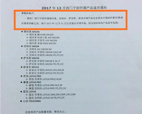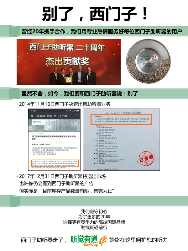 <p microsoft="" yahei="" ui="" simsun="" segoe="" tahoma="" helvetica="" sans-serif="" font-size:="" 14px="" text-align:="" center="" style="padding: 5px 0px; margin: 0px; color: rgb(51, 51, 51); font-family: "Microsoft YaHei UI", "Microsoft YaHei", SimSun, "Segoe UI", Tahoma, Helvetica, sans-serif; font-size: 16px; text-align: center;"><img src="http://www.zjqianhao.com/upfiles/201712110502357735.jpg" alt="" style="border: 0px;" /></p><p microsoft="" yahei="" ui="" simsun="" segoe="" tahoma="" helvetica="" sans-serif="" font-size:="" 14px="" text-align:="" center="" style="padding: 5px 0px; margin: 0px; color: rgb(51, 51, 51); font-family: "Microsoft YaHei UI", "Microsoft YaHei", SimSun, "Segoe UI", Tahoma, Helvetica, sans-serif; font-size: 16px; text-align: center;"><br /></p><p microsoft="" yahei="" ui="" simsun="" segoe="" tahoma="" helvetica="" sans-serif="" font-size:="" 14px="" text-align:="" center="" style="padding: 5px 0px; margin: 0px; color: rgb(51, 51, 51); font-family: "Microsoft YaHei UI", "Microsoft YaHei", SimSun, "Segoe UI", Tahoma, Helvetica, sans-serif; font-size: 16px; text-align: center;"><img src="http://www.zjqianhao.com/upfiles/201712201117438957.jpg" alt="" style="border: 0px;" /><br /></p><p microsoft="" yahei="" ui="" simsun="" segoe="" tahoma="" helvetica="" sans-serif="" font-size:="" 14px="" text-align:="" center="" style="padding: 5px 0px; margin: 0px; color: rgb(51, 51, 51); font-family: "Microsoft YaHei UI", "Microsoft YaHei", SimSun, "Segoe UI", Tahoma, Helvetica, sans-serif; font-size: 16px; text-align: center;"><br /></p><p microsoft="" yahei="" ui="" simsun="" segoe="" tahoma="" helvetica="" sans-serif="" font-size:="" 14px="" text-align:="" center="" style="padding: 5px 0px; margin: 0px; color: rgb(51, 51, 51); font-family: "Microsoft YaHei UI", "Microsoft YaHei", SimSun, "Segoe UI", Tahoma, Helvetica, sans-serif; font-size: 16px; text-align: center;">2014年11月16日西門子決定出售助聽器業務</p><p microsoft="" yahei="" ui="" simsun="" segoe="" tahoma="" helvetica="" sans-serif="" font-size:="" 14px="" text-align:="" center="" style="padding: 5px 0px; margin: 0px; color: rgb(51, 51, 51); font-family: "Microsoft YaHei UI", "Microsoft YaHei", SimSun, "Segoe UI", Tahoma, Helvetica, sans-serif; font-size: 16px; text-align: center;"> </p><center microsoft="" yahei="" ui="" simsun="" segoe="" tahoma="" helvetica="" sans-serif="" font-size:="" 14px="" style="color: rgb(51, 51, 51); font-family: "Microsoft YaHei UI", "Microsoft YaHei", SimSun, "Segoe UI", Tahoma, Helvetica, sans-serif; font-size: 16px;"><img src="http://www.zjqianhao.com/upfiles/20171211050740709.jpg" alt="" style="border: 0px;" /><br /></center><center microsoft="" yahei="" ui="" simsun="" segoe="" tahoma="" helvetica="" sans-serif="" font-size:="" 14px="" style="color: rgb(51, 51, 51); font-family: "Microsoft YaHei UI", "Microsoft YaHei", SimSun, "Segoe UI", Tahoma, Helvetica, sans-serif; font-size: 16px;"><br /></center><p microsoft="" yahei="" ui="" simsun="" segoe="" tahoma="" helvetica="" sans-serif="" font-size:="" 14px="" text-align:="" center="" style="padding: 5px 0px; margin: 0px; color: rgb(51, 51, 51); font-family: "Microsoft YaHei UI", "Microsoft YaHei", SimSun, "Segoe UI", Tahoma, Helvetica, sans-serif; font-size: 16px; text-align: center;">2017年12月31日西門子助聽器將正式退出中國市場</p><p microsoft="" yahei="" ui="" simsun="" segoe="" tahoma="" helvetica="" sans-serif="" font-size:="" 14px="" text-align:="" center="" style="padding: 5px 0px; margin: 0px; color: rgb(51, 51, 51); font-family: "Microsoft YaHei UI", "Microsoft YaHei", SimSun, "Segoe UI", Tahoma, Helvetica, sans-serif; font-size: 16px; text-align: center;"> </p><center microsoft="" yahei="" ui="" simsun="" segoe="" tahoma="" helvetica="" sans-serif="" font-size:="" 14px="" style="color: rgb(51, 51, 51); font-family: "Microsoft YaHei UI", "Microsoft YaHei", SimSun, "Segoe UI", Tahoma, Helvetica, sans-serif; font-size: 16px;"><img src="http://www.zjqianhao.com/upfiles/201712110508305244.png" alt="" style="border: 0px;" /><br /></center><center microsoft="" yahei="" ui="" simsun="" segoe="" tahoma="" helvetica="" sans-serif="" font-size:="" 14px="" style="color: rgb(51, 51, 51); font-family: "Microsoft YaHei UI", "Microsoft YaHei", SimSun, "Segoe UI", Tahoma, Helvetica, sans-serif; font-size: 16px;"><br /></center><p microsoft="" yahei="" ui="" simsun="" segoe="" tahoma="" helvetica="" sans-serif="" font-size:="" 14px="" text-align:="" center="" style="padding: 5px 0px; margin: 0px; color: rgb(51, 51, 51); font-family: "Microsoft YaHei UI", "Microsoft YaHei", SimSun, "Segoe UI", Tahoma, Helvetica, sans-serif; font-size: 16px; text-align: center;">銀河系、交響樂、薩克斯、新音樂、荷悅、睿蓮、蓮花、心動……</p><p microsoft="" yahei="" ui="" simsun="" segoe="" tahoma="" helvetica="" sans-serif="" font-size:="" 14px="" text-align:="" center="" style="padding: 5px 0px; margin: 0px; color: rgb(51, 51, 51); font-family: "Microsoft YaHei UI", "Microsoft YaHei", SimSun, "Segoe UI", Tahoma, Helvetica, sans-serif; font-size: 16px; text-align: center;">西門子助聽器系列產品悉數退市</p><p microsoft="" yahei="" ui="" simsun="" segoe="" tahoma="" helvetica="" sans-serif="" font-size:="" 14px="" text-align:="" center="" style="padding: 5px 0px; margin: 0px; color: rgb(51, 51, 51); font-family: "Microsoft YaHei UI", "Microsoft YaHei", SimSun, "Segoe UI", Tahoma, Helvetica, sans-serif; font-size: 16px; text-align: center;"> </p><center microsoft="" yahei="" ui="" simsun="" segoe="" tahoma="" helvetica="" sans-serif="" font-size:="" 14px="" style="color: rgb(51, 51, 51); font-family: "Microsoft YaHei UI", "Microsoft YaHei", SimSun, "Segoe UI", Tahoma, Helvetica, sans-serif; font-size: 16px;"><img src="http://www.zjqianhao.com/upfiles/201712110509096639.jpg" alt="" style="border: 0px;" /><br /></center><p microsoft="" yahei="" ui="" simsun="" segoe="" tahoma="" hel