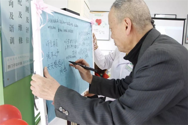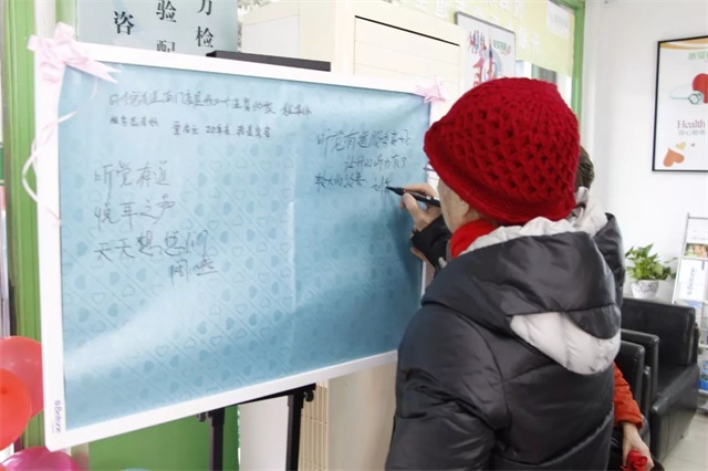 <span style="font-size:16px;"> 2017年12月8日,聽覺有道成都南門服務(wù)中心(原悅耳聽覺成都南門中心)20周歲啦!</span></p><p style="text-align: center;"><span style="font-size:16px;"> </span></p><center><img src="/upfiles/201801230505336847.jpg" alt="" /><br /></center><p></p><p style="text-align: center;"><span style="font-size:16px;"> ▲ 門店驗配師與新老用戶大合影</span></p><p style="text-align: center;"><span style="font-size:16px;"> </span></p><center><img src="/upfiles/201801230505391017.jpg" alt="" /><br /></center><p></p><p style="text-align: center;"><span style="font-size:16px;"> ▲ 用戶到店簽到</span></p><p style="text-align: center;"><span style="font-size:16px;"> </span></p><center><img src="/upfiles/201801230505511814.jpg" alt="" /><br /></center><p></p><p style="text-align: center;"><span style="font-size:16px;"> ▲ 用戶陸續(xù)到店入座</span></p><p style="text-align: center;"><span style="font-size:16px;"> </span></p><center><img src="/upfiles/201801230506279812.jpg" alt="" /><br /></center><p></p><p style="text-align: center;"><span style="font-size:16px;"> ▲ 為用戶們準(zhǔn)備的點心和水果</span></p><p style="text-align: center;"><span style="font-size:16px;"> </span></p><center><img src="/upfiles/201801230506592453.jpg" alt="" /><br /></center><p></p><p style="text-align: center;"><span style="font-size:16px;"> ▲ 為用戶準(zhǔn)備的精美禮品</span></p><p style="text-align: center;"><span style="font-size:16px;"> </span></p><center><img src="/upfiles/201801230507068624.jpg" alt="" /><br /></center><p></p><p style="text-align: center;"><span style="font-size:16px;"> ▲ 專業(yè)培訓(xùn)師王斌為用戶們講課</span></p><p style="text-align: center;"><span style="font-size:16px;"><br /></span></p><p style="text-align: center;"><span style="font-size:16px;"> 此次課程內(nèi)容主要圍繞:“聆聽技巧指導(dǎo)”和“聽力損失預(yù)防”和展開。</span></p><center><img src="/upfiles/201801230507144214.jpg" alt="" /><br /></center><p></p><p style="text-align: center;"><span style="font-size:16px;"> ▲ 王斌老師與用戶親切交談</span></p><p style="text-align: center;"><span style="font-size:16px;"> </span></p><center><img src="/upfiles/201801230507214663.jpg" alt="" /><br /></center><p></p><p style="text-align: center;"><span style="font-size:16px;"> ▲ 培訓(xùn)師王斌、店長王蕾與用戶合影留念</span></p><p style="text-align: center;"><span style="font-size:16px;"><br /></span></p><p style="text-align: center;"><span style="font-size:16px;"> 合影留念的這位用戶跟培訓(xùn)師王斌可謂是緣分不淺~她和培訓(xùn)師王斌的母親是多年的老同事,多年未見今日卻在此重逢!情,讓我們聚于此。</span></p><p style="text-align: center;"><span style="font-size:16px;"> </span></p><center><img src="/upfiles/201801230507285900.jpg" alt="" /><br /></center><p></p><p style="text-align: center;"><span style="font-size:16px;"> ▲ 用戶與驗配師朱曉軍合影留念</span></p><p style="text-align: center;"><span style="font-size:16px;"> </span></p><center><img src="/upfiles/201801230507383932.jpg" alt="" /><br /></center><p></p><p style="text-align: center;"><span style="font-size:16px;"> ▲ 用戶與店長王蕾合影留念</span></p><p style="text-align: center;"><span style="font-size:16px;"> </span></p><center><img src="/upfiles/201801230508077287.jpg" alt="" /><br /></center><p></p><p style="text-align: center;"><span style="font-size:16px;"> ▲ 用戶與驗配師們合影留念</span></p><p style="text-align: center;"><span style="font-size:16px;"><br /></span></p><p style="text-align: center;"><span style="font-size:16px;"> 點蠟燭、唱生日歌、切蛋糕環(huán)節(jié)</span></p><p style="text-align: center;"><br /></p><center><img src="/upfiles/20180123050814975.jpg" alt="" /><br /></center><p></p><p style="text-align: center;"><span style="font-size:16px;"> ▲ 店長王蕾親自為用戶分發(fā)蛋糕</span></p><p style="text-align: center;"><span style="font-size:16px;"><br /></span></p><p style="text-align: center;"><span style="font-size:16px;"> 用戶為南門服務(wù)中心送上祝福</span></p><p style="text-align: center;"><br /></p><center><img src="/upfiles/201801230508271731.jpg" alt="" /><br /></center><p></p><p style="text-align: center;"><span style="font-size:16px;"> </span></p><center><img src="/upfiles/201801230508342844.jpg" alt="" /><br /></center><p></p><p style="text-align: center;"><span style="font-size:16px;"> </span></p><center><img src="/upfiles/201801230508426099.jpg" alt="" /><br /></center><p></p><p style="text-align: center;"><span style="font-size:16px;"> </span></p><center><img src="/upfiles/201801230508483483.jpg" alt="" /><br /></center><p></p><p style="text-align: center;"><span style="font-size:16px;"> </span></p><center><img src="/upfiles/201801230508542561.jpg" alt="" /><br /></center><p></p><p style="text-align: center;"><span style="font-size:16px;"> </span></p><center><img src="/upfiles/201801230508593450.jpg" alt="" /><br /></center><p></p><p style="text-align: center;"><span style="font-size:16px;"> </span></p><center><img src="/upfiles/201801230509041756.jpg" alt="" /><br /></center><p></p><p style="text-align: center;"><span style="font-size:16px;"> </span></p><center><img src="/upfiles/2018012305091028.jpg" alt="" /><br /></center><p></p><p style="text-align: center;"><span style="font-size:16px;"> </span></p><center><img src="/upfiles/201801230509159023.jpg" alt="" /><br /></center><p></p><p style="text-align: center;"><span style="font-size:16px;"> ▲ 用戶滿滿的祝福讓我們很感動</span></p><p style="text-align: center;"><span style="font-size:16px;"><br /></span></p><p style="text-align: center;"><span style="font-size:16px;"> 從悅耳聽覺到聽覺有道,感謝您陪伴了我們20年。有您相伴,我們不再孤單。</