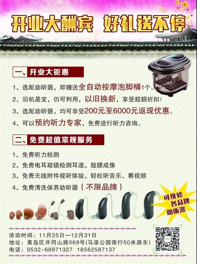 <span style="font-size:16px;"> 大家好,我們是 聽覺有道 。</span></p><p><span style="font-size:16px;"> 2017年11月24日上午8點58分,聽覺有道青島開發區井岡山路中心盛大開業!</span></p><p><span style="font-size:16px;"><br /></span></p><p><center><img src="http://www.zjqianhao.com/upfiles/201801230535003010.jpg" style="text-align: -webkit-center;" alt="" /></center><center><br /></center></p><p></p><p><span style="font-size:16px;"> 升級之后再升級,開發區井岡山路中心店是我們向前邁出去的標桿店,創新的助聽器行業內裝理念,是對行業未來發展趨勢的一次大膽探索。</span></p><p><span style="font-size:16px;"> 趕著吉時,燃起鞭炮,紀念這喜慶的日子。</span></p><p><span style="font-size:16px;"> 青島開發區井岡山路中心是我們山東省內第25家門店,當天受邀的新老客戶都紛紛進店見證了這一難忘時刻。</span></p><p><span style="font-size:16px;"><br /></span></p><p style="text-align: center;"><span style="font-size:16px;"> <img src="http://www.zjqianhao.com/upfiles/201801230535073126.jpg" style="text-align: -webkit-center;" alt="" /></span></p><center><br /></center><p></p><p><span style="font-size:16px;"> 當受邀用戶全都到場的時候,徐總給他們奉上了伴手禮包,并表達了多年來感謝用戶的支持與厚愛。</span></p><p><span style="font-size:16px;"> 稍后驗配專家,依次免費為新老用戶進行聽力測聽、耳道檢查、產品深度保養等貼心服務。</span></p><p><span style="font-size:16px;"><br /></span></p><p style="text-align: center;"><span style="font-size:16px;"> <img src="/upfiles/201801230535521781.jpg" alt="" /></span></p><p style="text-align: center;"><span style="font-size:16px;"><br /></span></p><blockquote style="margin: 0 0 0 40px; border: none; padding: 0px;"><p style="text-align: center;"> <img src="/upfiles/201801230536013059.jpg" alt="" /></p></blockquote><p></p><p><span style="font-size:16px;"> 不忘初心,破繭而出。聽覺有道將繼續為廣大聽障人士提供專業極致的聽力解決方案和規范完美的聽覺護理服務!</span></p>" />
