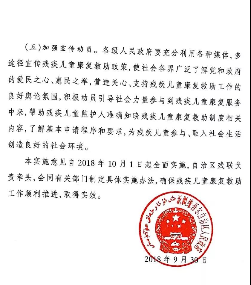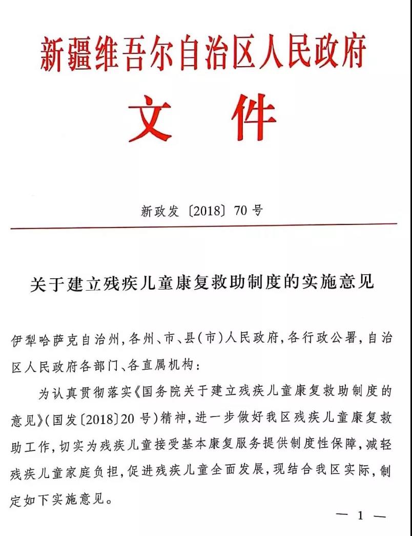 新疆維吾爾自治區人民政府關于建立殘疾兒童康復救助制度的實施方案