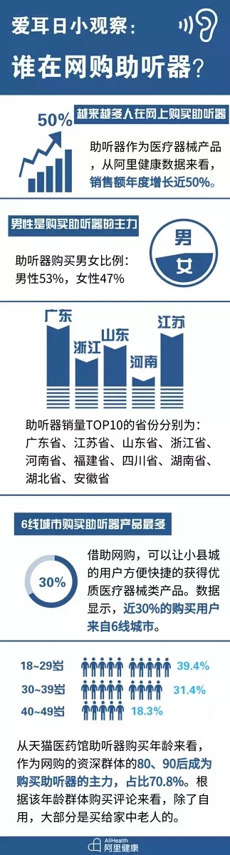 阿里巴巴旗下阿里健康發布了在淘寶、天貓等平臺上的助聽器線上銷售數據,顯示助聽器類產品年銷售額度增長60%,廣東、江蘇、山東三省成為購買助聽器最多的省份;近30%的助聽器購買用戶來自人口20~50萬之間的小縣城,成為最大購買區域。<br /> 但是這份數據,究竟打了誰的臉?<br /> 我們知道,助聽器的專業驗配目前是很難完全在線上完成的,更別說聽力檢查,調試和評估了,但是我們打開淘寶搜索助聽器,大量廉價助聽器撲面而來,價格多在兩三百元之間,這樣的助聽器,按商品介紹說直接買回家佩戴即可,下面也是各種好評如潮,但是這樣的助聽器真能幫助我們解決聽力問題嗎?<br /> 近年來,家用醫療器械電商發展迅速,線上渠道逐漸成為家用醫療器械的銷售主渠道之一。越來越多人,開始通過網購選購助聽器,根據統計顯示,僅僅天貓醫藥平臺,網購助聽器類產品的年銷售額就增長近50%。<br /> 從某種程度來說,網購平臺甚至成為了很多人了解助聽器知識的第一渠道,這對于很多專業聽力機構來說,是多么令人傷心的事情。<br /> 從阿里健康發布的數據來看:男性用戶購買者領先,占了53%。作為網購的資深群體,80~90后成為購買助聽器的主力,占比70.8%。根據該年齡群體購買評論觀察,除了自用外,大部分是賣給家中老年人的。<br /></span><p><span style="font-size:16px;"> 阿里健康發布的統計資料:</span></p><p><span style="font-size:16px;"><img src="/upfiles/201903210917476432.jpg" alt="" /><br /></span></p><span style="font-size:16px;"> 上圖資料來自阿里健康<br /> 盡管我們不斷呼吁,但目前的市場生態中助聽器的最大銷售渠道仍是線上。<br /> 那么為什么我們不建議在網上直接購買助聽器呢,有以下幾個原因。<br /> 1、助聽器適不適合你的耳朵,只有經過專業驗配才能知道<br /> 很多人不清楚助聽器的聲音補償原理,以為是隨便買一個就能佩戴,但是我們要知道,每一只耳朵都是獨一無二的,所匹配的助聽器需要根據你的檢查結果來適配、來調試,甚至要做耳模,做評估。這些信息都無法在線上準確獲得,不考慮這些信息,你的設備效果就不會好。<br /> 2、助聽器的驗配,需要專業的驗配師來做<br /> 助聽器的驗配是整個銷售過程中最重要的環節,只有經過專業的調試才能達到好的效果。有人說,我可以遠程調試呀,當然,如果能做到,當然可以,不過目前在中國,99%的線上購買連詢問都沒有。這樣的驗配,豈不是和“非法行醫”一樣可怕。<br /> 3、聽力損失是一種疾病,需要認真對待<br /> 很多人對聽力知識了解不足,從本質上并沒有認真對待,甚至連醫院或聽力中心都沒有去過,就直接從網上下單購買了,心里想著反正也就兩三百塊錢,大不了效果不好不戴就是了。<a href="http://www.zjqianhao.com/listDetail.aspx?id=102601" target="_blank"><strong><span style="color:#3333ff;">保護聽力,不要成為聽障者中的一員!</span></strong></a><br /> 現在可以告訴你,聽力損失和你身體的其他疾病一樣,都理應獲得認真對待,最起碼,也應該去看看醫生或驗配師。<br /> 4、不是所有的聽力問題都能用助聽器解決<br /> 很多人想起要買助聽器,已經是聽力損失發生幾年以后了,甚至有些人的聽力損失已經很嚴重了,這時候僅僅依靠助聽器并不能解決所有問題。如果在網上購買助聽器,往往無法了解助聽器使用的局限性,也無法了解更多的康復知識,作為慢性病處理的角度,并不是買了助聽器就能一勞永逸。<br /> 5、專業人士的價值,不應僅僅體現在產品上<br /> 很多人在網上購買助聽器,是因為便宜,是因為方便,是抱著試一試的心態。但是我們想想,你都能相信素未謀面的網店,還不能相信面對面的助聽器驗配師嗎?助聽器驗配師的工作,沒有價值嗎?<br /> 這是助聽器行業的問題和痛點,也被很多人鉆了空子,但是對于聽力損失的人而言,驗配師的作用是不言而喻的。<br /></span><p><span style="font-size:16px;"> 雖然阿里健康“很驕傲”地發布了線上助聽器銷售的業績,但我們仍要呼吁:聽力問題,請到專業聽力機構解決。同時我們也要反思,為何整個聽力行業,沒有能夠抓住機遇,通過更廣泛的方式向公眾科普正確的知識呢?</span></p><p><span style="font-size:16px;"> 相關推薦閱讀:<a href="http://www.zjqianhao.com/listDetail.aspx?id=102635" target="_blank"><strong><span style="color:#3333ff;">聽覺有道教您如何選擇一臺適合又舒服的助聽器</span></strong></a><br /><br /> 聽覺有道助聽器價格:http://www.zjqianhao.com/products.html<br /><br /><br /> 發布于2019年3月21日 星期四<br /> 上午9:23分<br /></span></p>" />